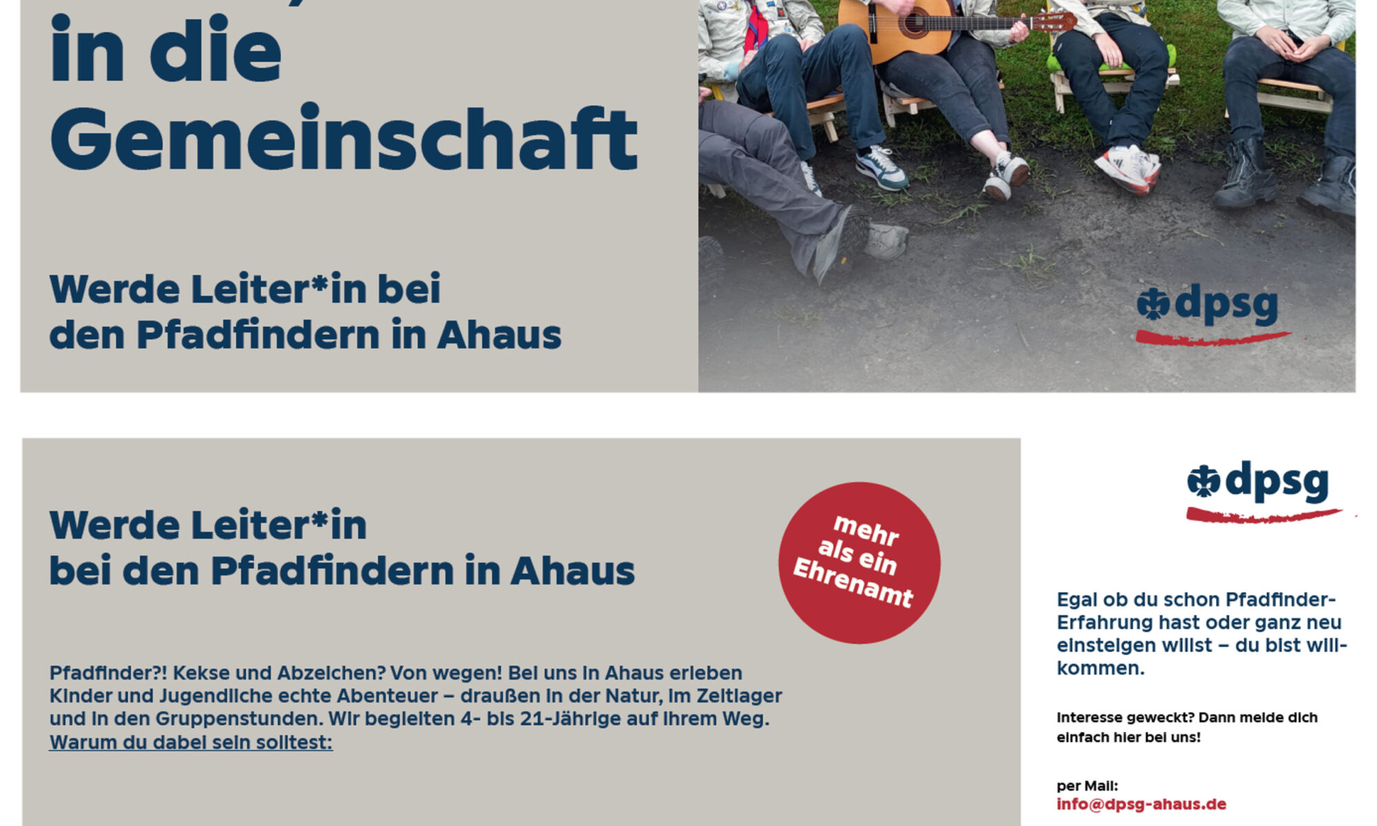 Unter diesem Motto sind wir auf der dringenden Suche nach neuen Leiter*innen.